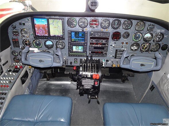 | Avionics | | Avionics and autopilot upgrade per EASA Mod. 0060029550-001 PS Engineering PMA8000C Audio Panel, Intercom, Marker Beacon Garmin GNS530W NAV-COM-GPS, interfaced with Radar System Garmin GNS430W NAV-COM-GPS Garmin G-600, EASA STC.A.S.037679 (Garmin GDU620) with TAWS and Synthetic Vision, Radar Display King KI206 Number Two NAV Indicator King KX165A NAV-COM 3, 8.33 kHz S-TEC 55X Autopilot with Computerl, Transducer, Roll/Pitch/Trim Servos, Turn and Bank, Yaw Damper, FAA STC SA8890SW-D, LBA Validated Shadin Digidata-L with Fuel Flow Option grandfathered FAA STC SA00729SE-D King KN63 DME, displayed on Garmin G600 King KR87 ADF displayed on Garmin G600 Garmin GTX330 XPDR S Number 1 Garmin GDC74A Encoder King KT73 XPDR S Number 2 ACK A30.4 Encoder Garmin GWX68 Weather Radar displayed on Garmin G600 King KRA10A Radar Altimeter Altitude Alerter integrated in the Garmin G600 L-3 Sky 497 TAS System displayed on Garmin G600 and GArmin GNS530W, connected to ACK A-30.4 Encoder Artex ELT ME406, PN 453-6603, 406 Mhz Intercom for all Occupants EDM760 Engine Analyzer Astro Tec Digital Clock/Timer Complete Co-Pilot Instrument Panel ASR EPU6A5 Emergency Power Supply Attitude Gyro, Attitude Indiator, Vertical Speed Indicator, both Airspeed Indicators, Fuel Quantity Indicator, Manifold Pressure Indicator repaired by Avionitec on 20.09.2013 Main Battery replaced on 20.09.2013 Both Attitude Indicators and Tachometers repaired by Avionitec on 30.03.2015 Radar Antenna GWX68 replaced on 02.11.2016 HSI replaced on 14.12.2018 |