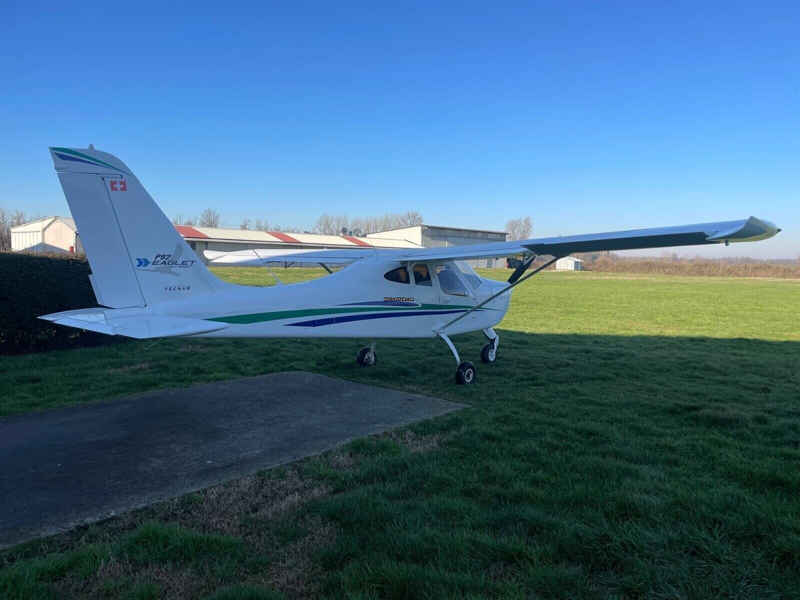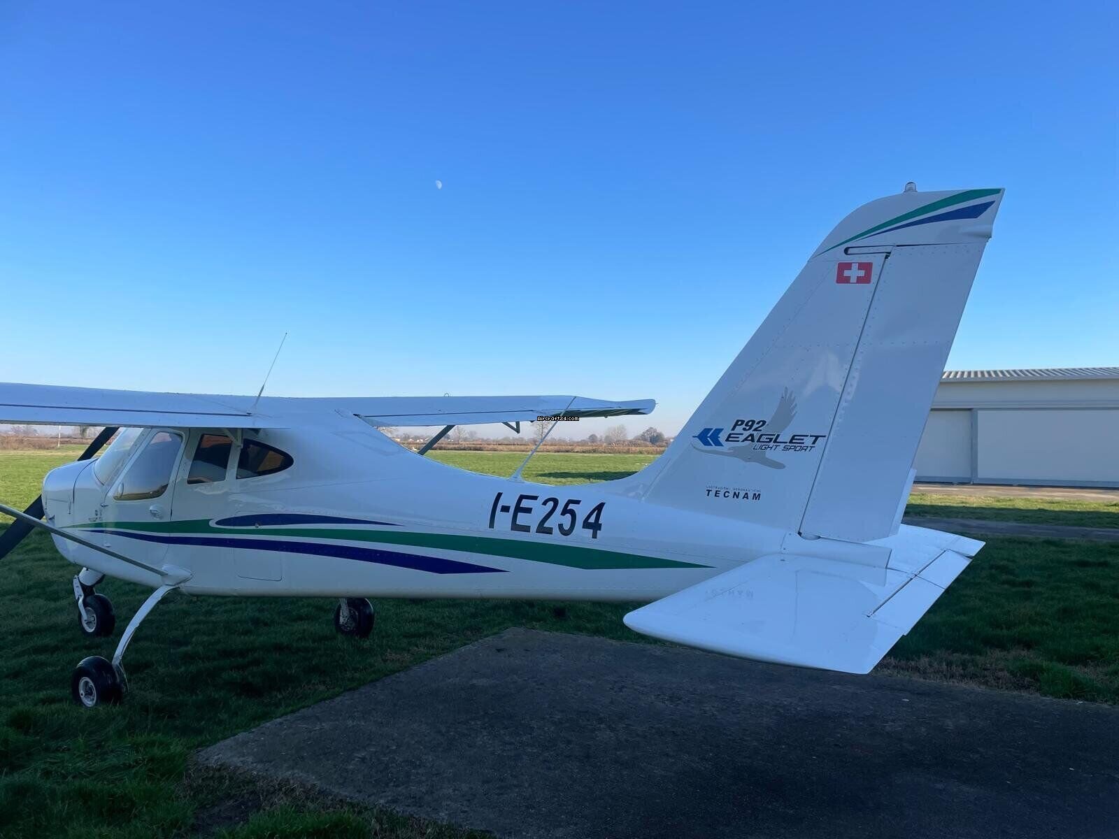 | Base data | | Type: | Single Prop | | Special Type: | Light Sport Aircraft | | Make: | Tecnam | | Model: | P92 EAGLET 100 CV | | Year built: | 2011 | | Registration No.: | I-E254 | | Serial No.: | 1403 | | Attributes: | Always hangared | | Last annual: | 8/2025 | | Location: | Italy, Minnesota, Alessandria, LILA | | Total Time (TTAF): | 1360 h | | Price: | € 74,000 (~ US$ 86,972) | | EU VAT paid: | yes | | No. of passengers: | 1 |