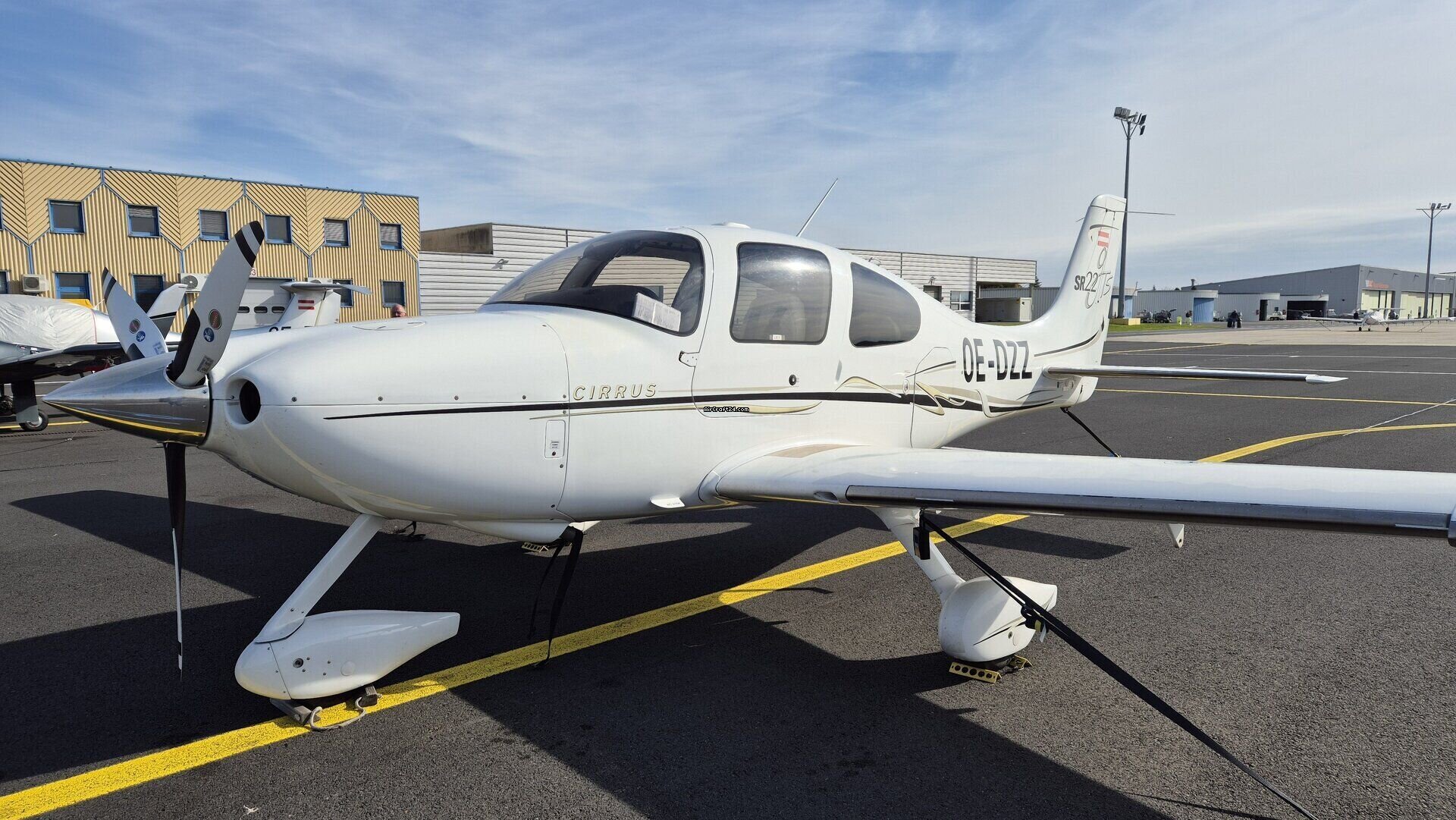| Base data | | Type: | Single Prop | | Make: | Cirrus | | Model: | SR22-G2 GTS | | Year built: | 2006 | | Registration No.: | OE-DZZ | | Serial No.: | 2020 | | Attributes: | IFR certified IFR equipped | | Location: | Austria, Graz, LOWG | | Total Time (TTAF): | 1230 h | | Price: | € 290,000 (~ US$ 337,473) | | EU VAT paid: | yes |