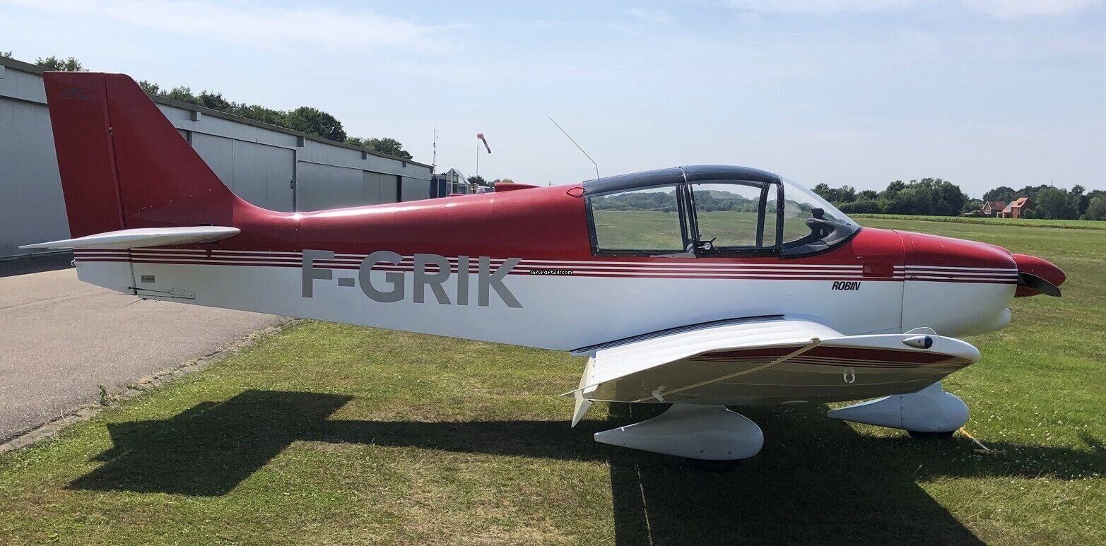 | Base data | | Type: | Single Prop | | Make: | Robin | | Model: | DR300/108 | | Year built: | 1971 | | Registration No.: | F-GRIK | | Serial No.: | 586 | | Attributes: | Always hangared | | Last annual: | 6/2025 | | Location: | Belgium, EBST | | Total Time (TTAF): | 4376 h | | Price: | € 60,000 (~ US$ 68,952) | | EU VAT paid: | yes | | No. of passengers: | 4 |
