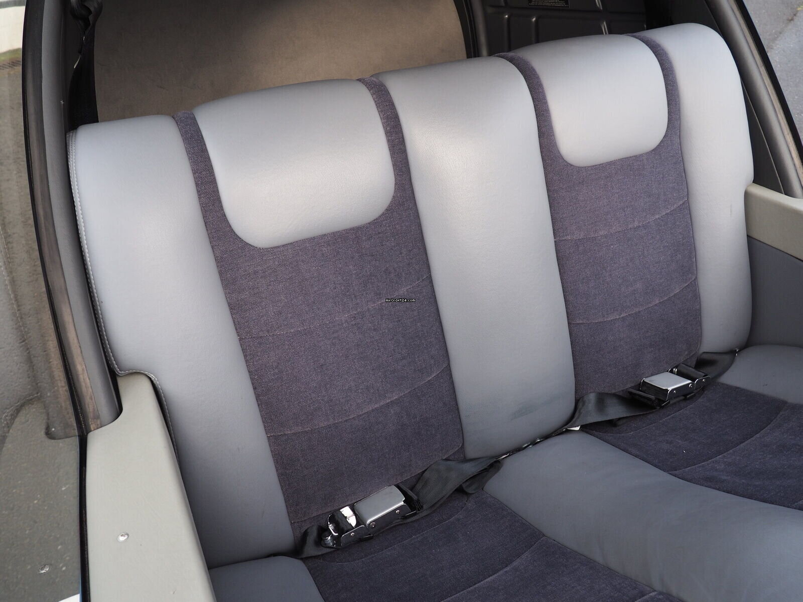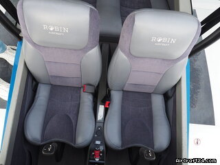 | Interior | | The cabin of this Robin DR-400 is a testament to thoughtful ergonomics and premium materials, offering a spacious four-seat configuration that ensures comfort for both pilot and passengers. The interior features a striking slate-grey and charcoal upholstery design. The seats are finished in a durable, high-quality fabric with light grey synthetic leather accents for a modern, automotive-style feel. |