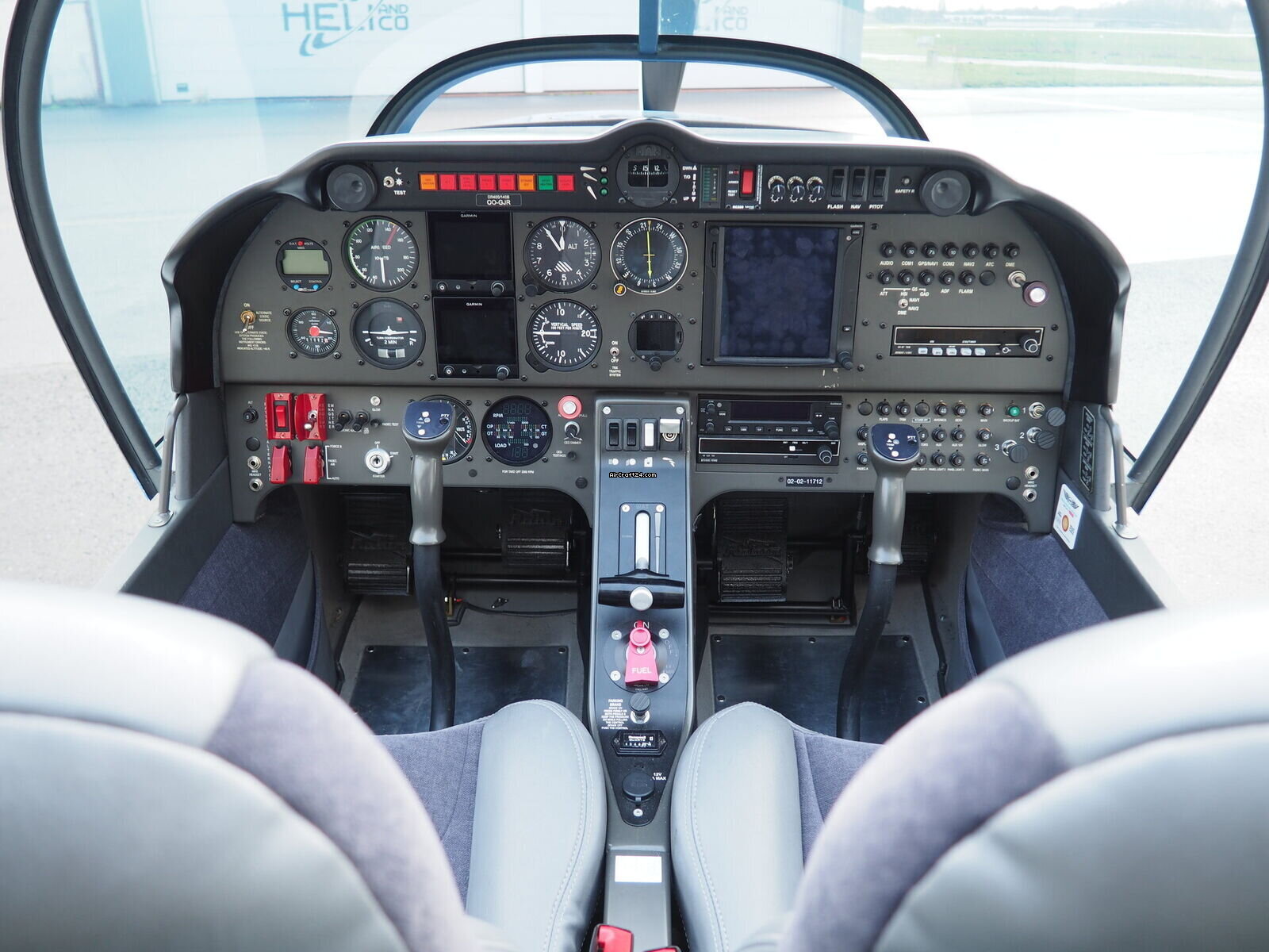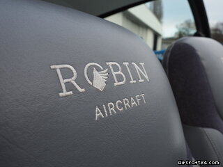 | Interior | | The cabin of this Robin DR-400 is a testament to thoughtful ergonomics and premium materials, offering a spacious four-seat configuration that ensures comfort for both pilot and passengers. The interior features a striking slate-grey and charcoal upholstery design. The seats are finished in a durable, high-quality fabric with light grey synthetic leather accents for a modern, automotive-style feel. |